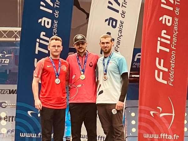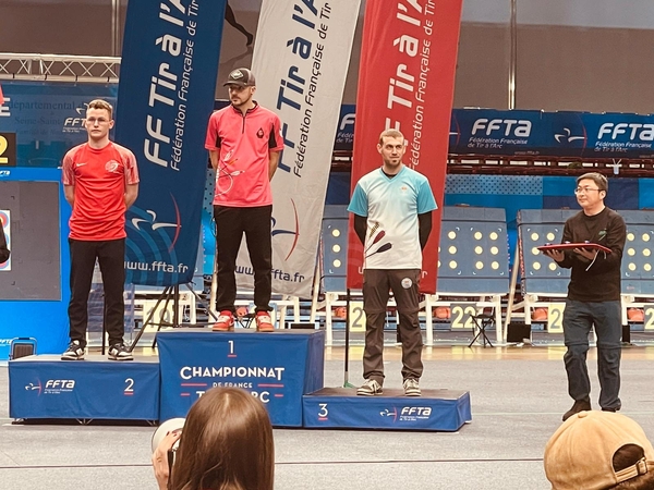 Les championnats de France de tir à l’arc en salle ont eu lieu le dernier week-end de février à Paris et les Archers Bréhalais sont fiers d’y avoir représenté leurs couleurs. En effet, Quentin Fautrat, dans sa poursuite des médailles, puisqu’il est déjà champion de la Manche et de Normandie 2026, est allé cherché un podium en se mesurant aux meilleurs. A force d’entraînement et de concentration, Quentin Fautrat remporte une magnifique médaille de bronze et monte sur la 3eme marche du podium derrière Victor Bouleau et Nicolas Girard, champion du monde 2025 qui remporte l’or.